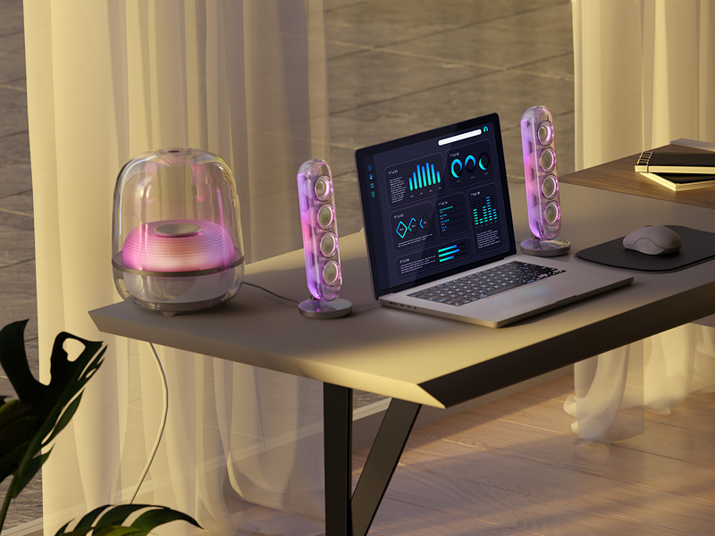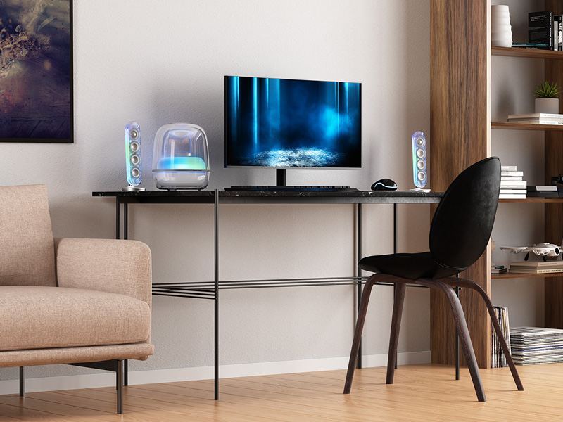 Głośniki satelitarne i subwoofer to feeria barw oraz dynamicznych efektów świetlnych, która odmieni Twoje doznania muzyczne! Zanurz się w świecie bogatych kolorów i płynnych animacji dopasowanych idealnie do Twojego nastroju.